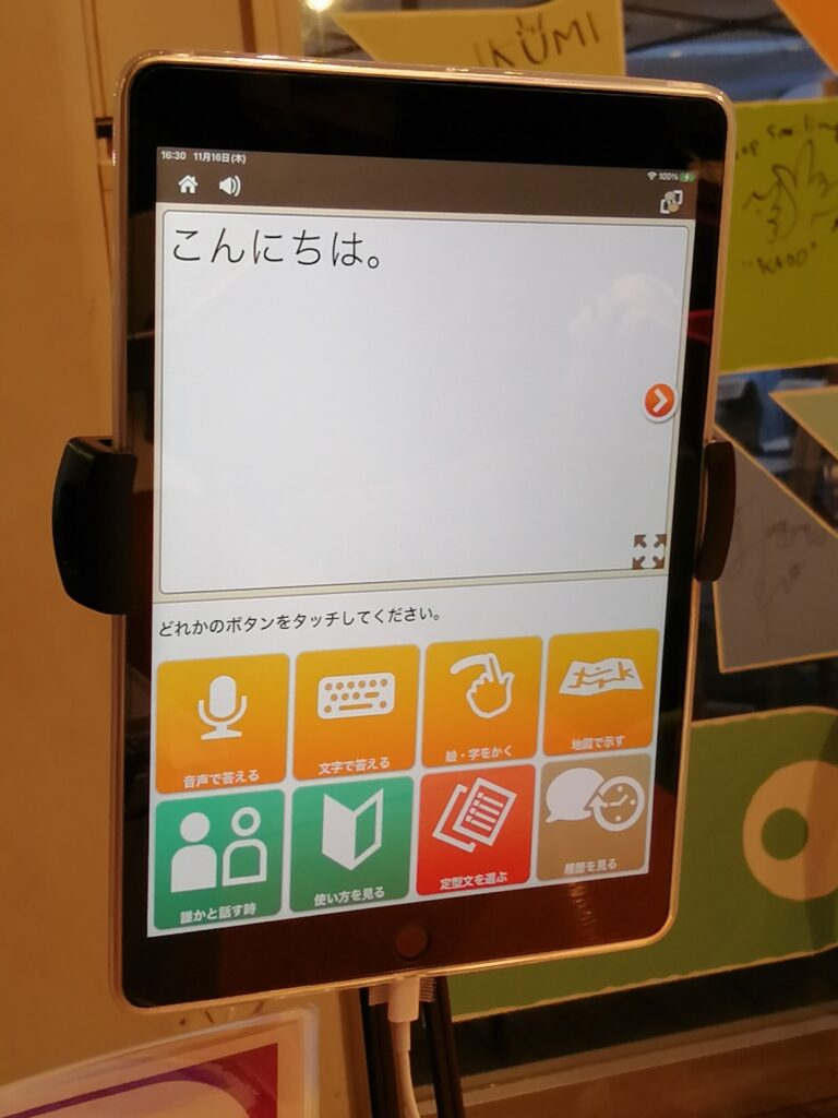 店内には、音声などの言語を文字に変える「見える化」等の最新のコミュニケーションツールが紹介されていました。