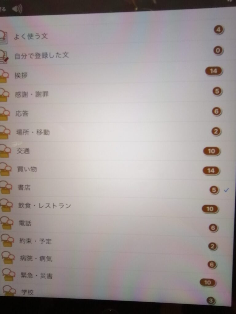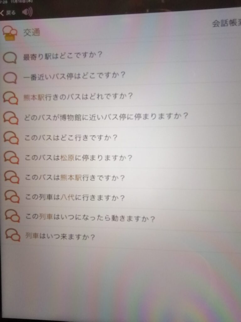 あらかじめ、様々な場面で想定されるコミュニケーションの定型文を登録しておき、相手に見せることで伝える、