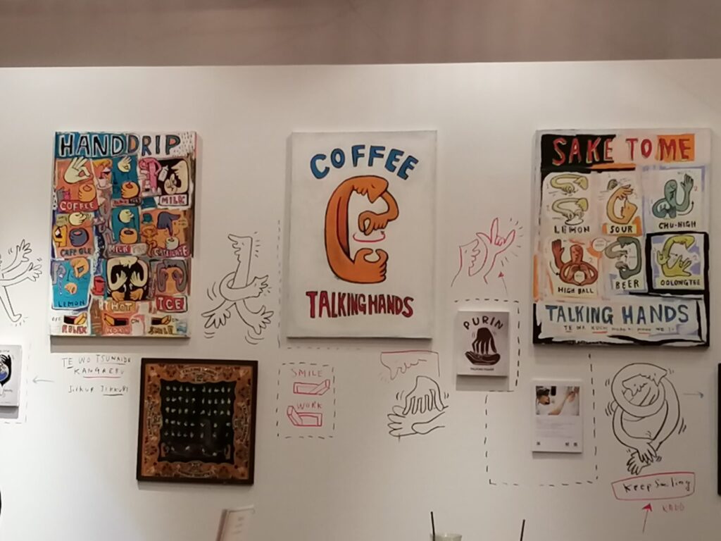 店内には、「TALKING HANDS」のアートが展示されていて、とてもポップで雰囲気が良かったです。